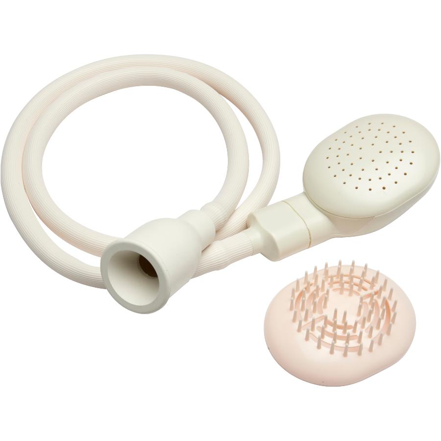 Easily slide this shower hose and attached showerhead onto your faucet spout. The included snap-on shower head brush can conveniently wash and brush shampoo out of your hair. This product is great for use on pets. This showerhead helps makes it easier to bathe your pet as the hose adds some length to reach your pet's fur coat. This design is simple to attach and remove.
