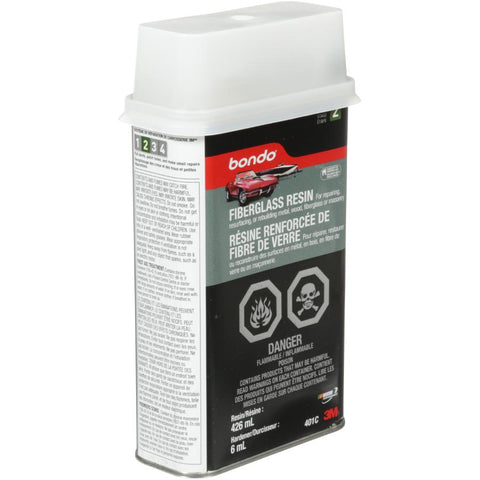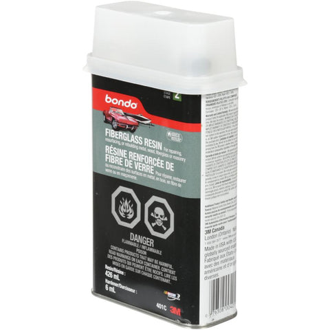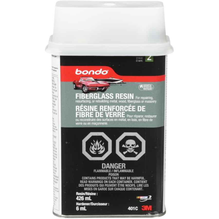 Bondo Fibreglass Resin is the same high-strength polyester resin that is used to build most boats. Can be used alone or with fibreglass tape, cloth or mat to repair damaged fibreglass boats, snowmobiles, jet skis, bathtubs and showers.