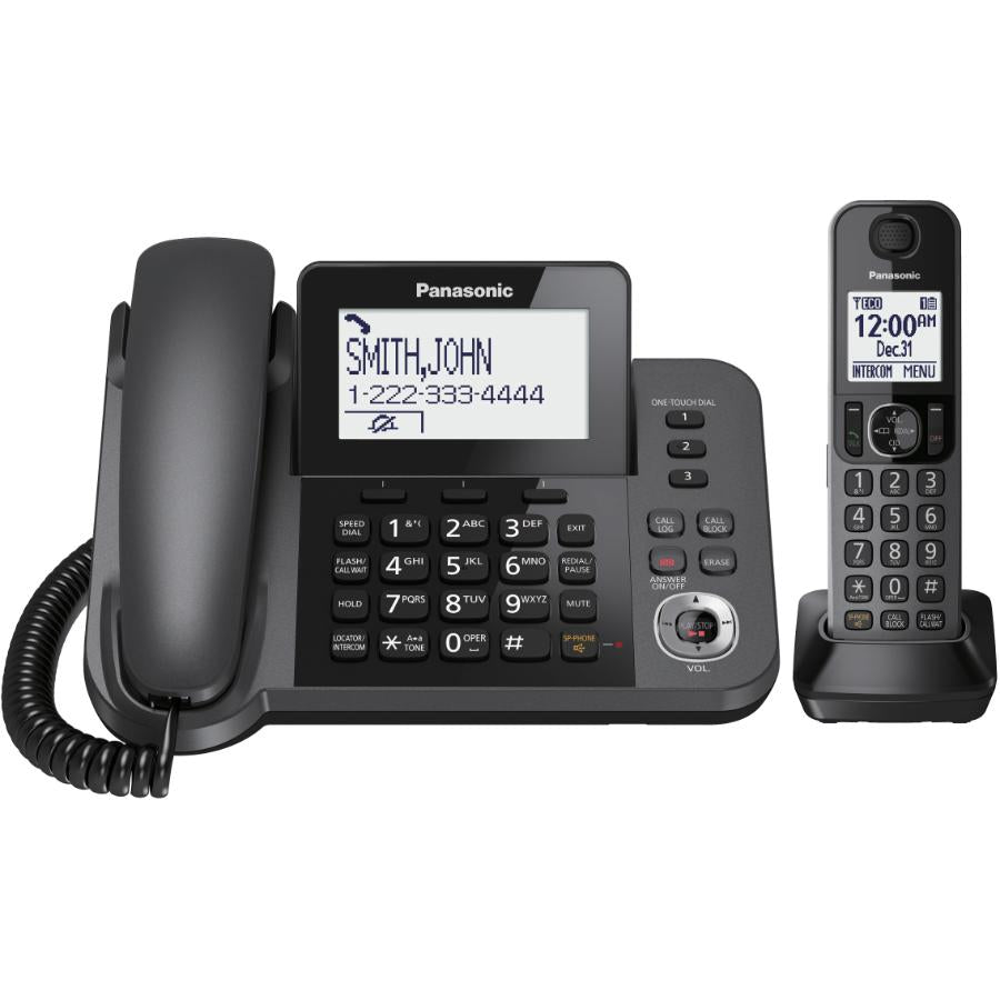 Designed for easy use with a large 3.4 inch LED that can be adjusted for maximum ease of both use and viewing, and three one-touch buttons for dialing, this Panasonic phone also features: power back up operation; 15-minute all digital answering system; large button lighted keypad; smart wall mountable; handset locator button; rechargeable AAA (Ni-MH) batteries; dedicated call block button (up to 250 numbers); 3 one-touch dialing buttons; talking caller ID; and noise reduction technology. **NOTE** Some features require a subscription from your telephone provider.