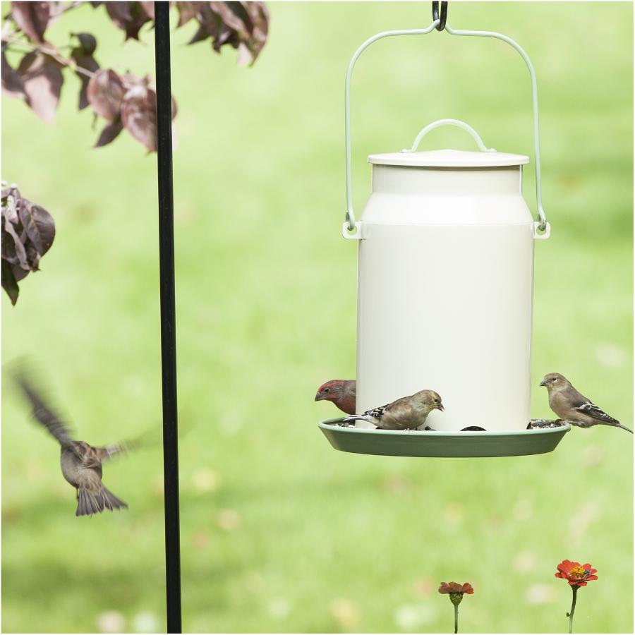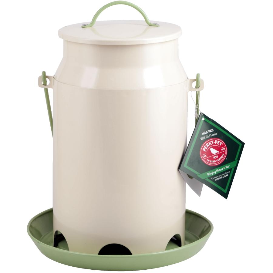 Looking for a charming addition to your feeding stations? With a classic milk canister silhouette and earthy colouring, the Perky-Pet feeder is the perfect rustic touch for any backyard setting. This feeder boasts a tight seal lid with drainage holes to keep seed fresh and dry in any weather. For your convenience, the milk pail lid twists off easily to allow for effortless filling and cleaning. With such a large reservoir, you’ll have no problem reaching all the nooks and crannies as you clean. The Perky-Pet feeder offers a durable, all-metal construction to ensure years of use in your backyard. Use the built-in hanging hook to place the feeder anywhere around your property.