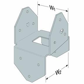 Allows for the connection of double 2x2's to the top of a 4x4 post • Double-shear nailing (on a 45' angle through the connector, through the double beam, and into the post) gives added strength • Material: 18 gauge • Finish: Z-Max (for use with pressure treated wood) • Installation: use all specified fasteners • Dimensional connector