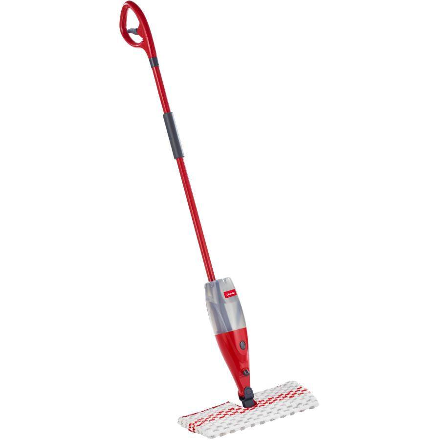 Make floor cleaning easy with the Vileda Promist Max Spray Mop. Fill the bottle with your favourite cleaning solution, spray the floor as you go and the job is done. The floor pad flips so you can clean longer without having to change it. Tiny fibres in the machine-washable microfibre pad lift and capture grease and dirt. This mop has an enlarged frame so it can cover more floor space. The trapezoidal shape gets into small corners. The head also swivels 360 degrees for easy handling. The refillable bottle has a quick release design.