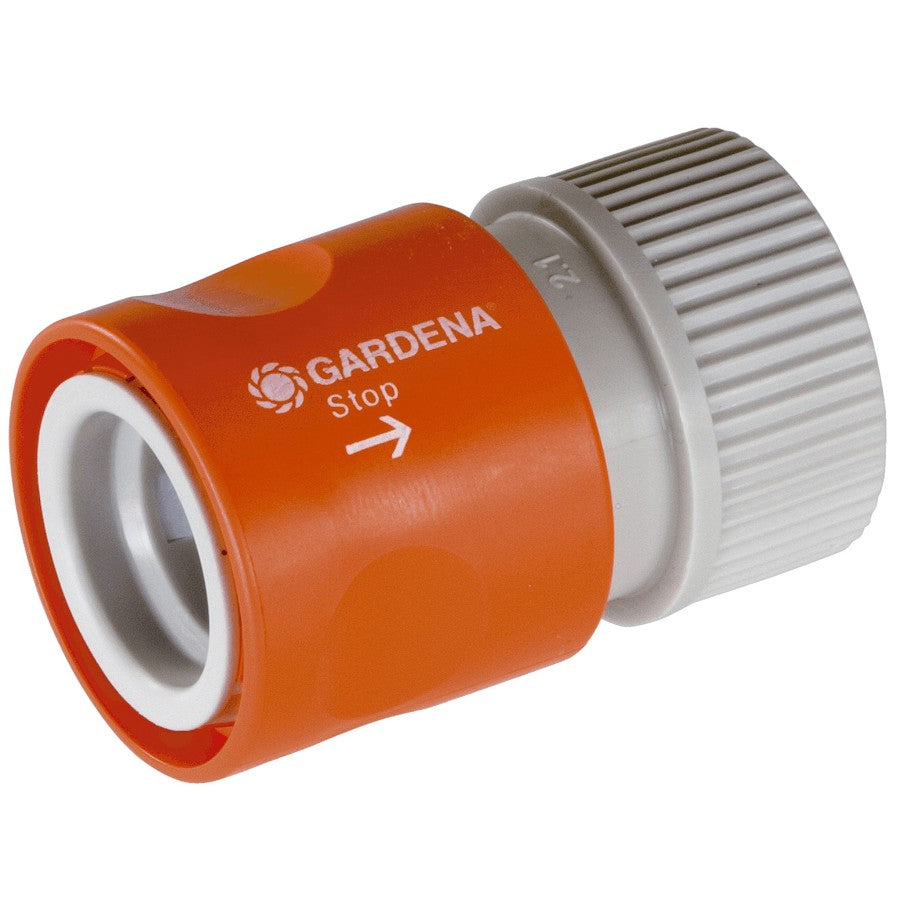 This water stop hose connector screws easily and firmly onto any hose, then snaps together with Gardena accessories or a Gardena accessory adapter. The water stop feature built into the connector, shuts off the water flow automatically and makes it possible to easily change the accessory without having to go to the tap!