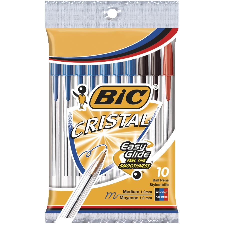 Cristal Easy Glide Medium Point Pens - Blue, Black and Red, 10 Pack