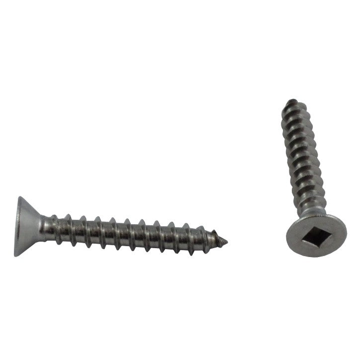 Material: STAINLESS STEEL Assembled Product Length: 1.25" Fastener Drive Type: ROBERTSON Finish: N/A Fastener Diameter (Imperial): #10 Fastener Length (Imperial): 1.25" . 18.8 Stainless steel • Flat head • Square socket drive