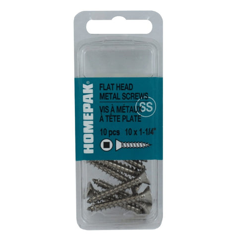 10 Pack #10 x 1-1/4" Flat Head Socket Stainless Steel Tap Screws