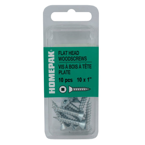 10 Pack #10 x 1" Flat Head Socket Zinc Plated Wood Screws