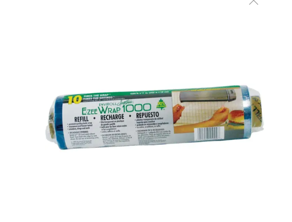 E-ZEEWRAP cling film replacement refill for use in the E-ZEEWRAP dispenser (HH# 4443685 & #4443686). It out stretches, out clings, and outperforms other cling films, providing a professional seal to preserve food and to guarantee freshness. With over 1000’ of 0.4 mil film on one roll, savings are evident and packaging waste is greatly reduced. Proudly made and packaged in Canada.