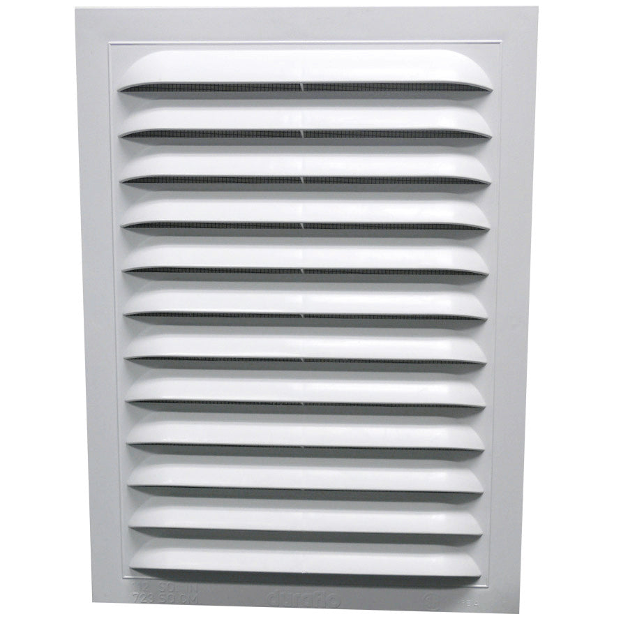 Installed on an exterior, vertical wall to provide attic ventilation, normally positioned in a roof gable. Louvered with a molded grill to protect against infiltration of birds, pests, weather and insects.