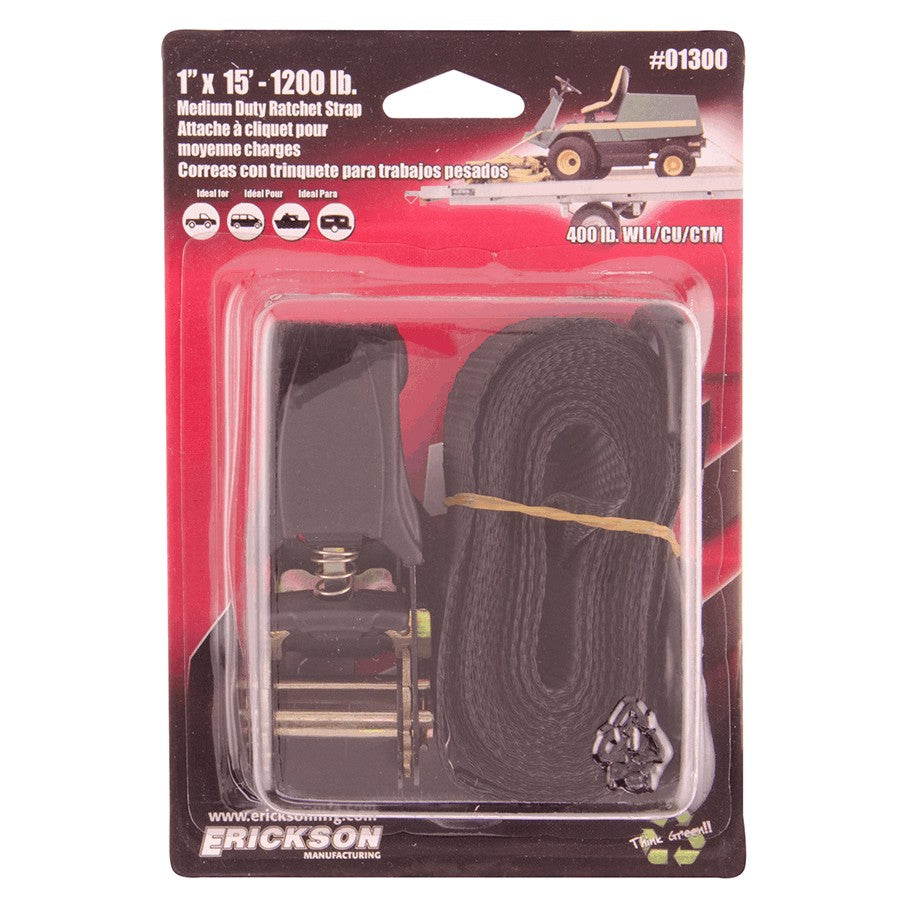 Erickson 01300 Black 1" x 15' Motorcycle/ATV Ratcheting Tie-Down Strap
