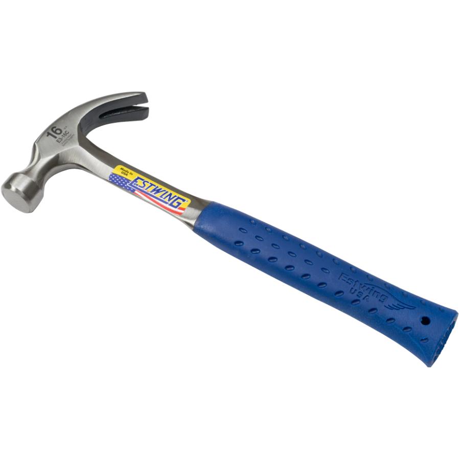 Estwing's 16oz curved claw solid steel hammer provides unsurpassed balance and temper. The head and handle are fully polished and forged in one-piece solid American steel. The exclusive Shock Reduction Grip is molded on and offers the uost in both comfort and durability, while reducing vibrations caused by impact.