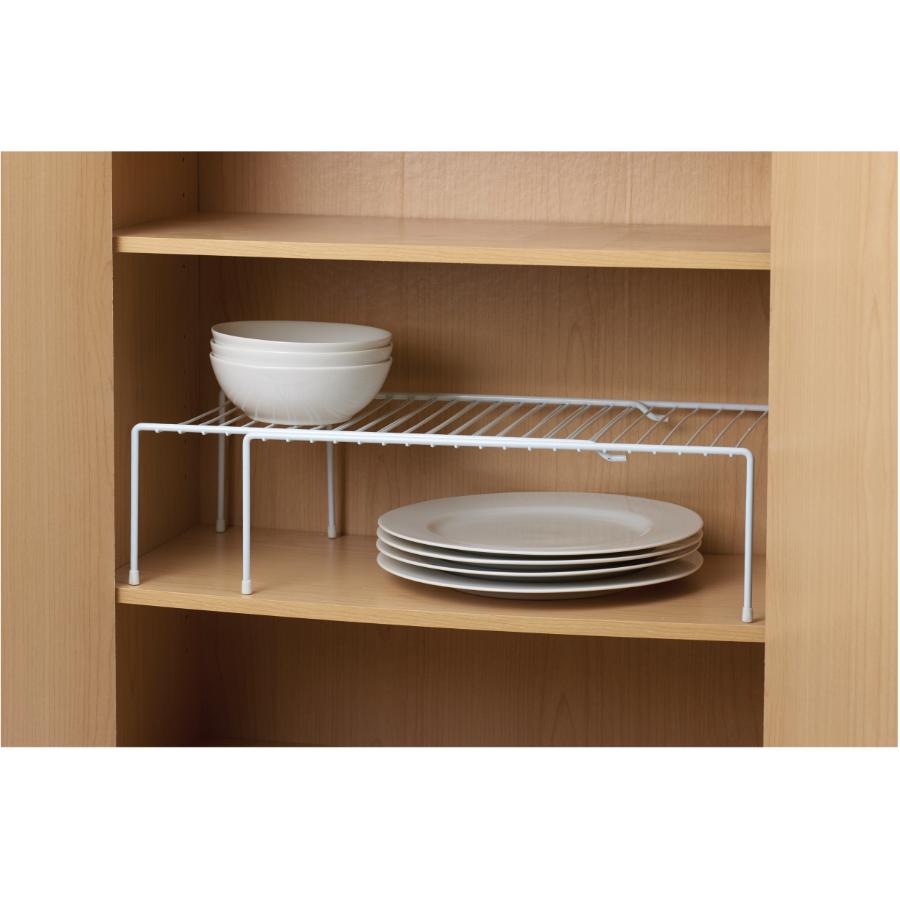 Assembled Product Height: 5.5" Assembled Product Width: 10" . Non-slip vinyl feet Deep design Heavy gauge wire supports big loads Durable white polyethylene coating Expandable from 17" to 33" DIMENSIONS: 43.2 cm - 83.8 cm L x 25.4 cm D x 14 cm H (17" - 33" L x 10" D x 5.5" H)