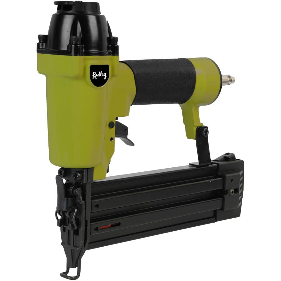 This Radley 18-gauge brad nailer is ideal for fastening all types of trim and moulding around the house. The lightweight, narrow body of this tool is easy to handle, making it ideal for floor use when fastening moulding and cabinet trim. This brad nailer has a 100-brad magazine that fires 18-gauge brads from 5/8" to 2".