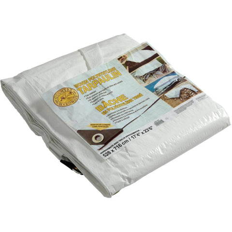 An excellent cover for all sorts of needs, this white 18' x 24' tarp protects your gear from the elements. Use it to keep outdoor projects dry during construction or cover a boat or car that is not in use. This tarp is weather resistant so it can protect outdoor furniture during the cool seasons. The poly tarpaulin is tear proof and impervious to mildew and rot. The easy-to-clean sheet features rust-resistant grommets on the sides and corners.