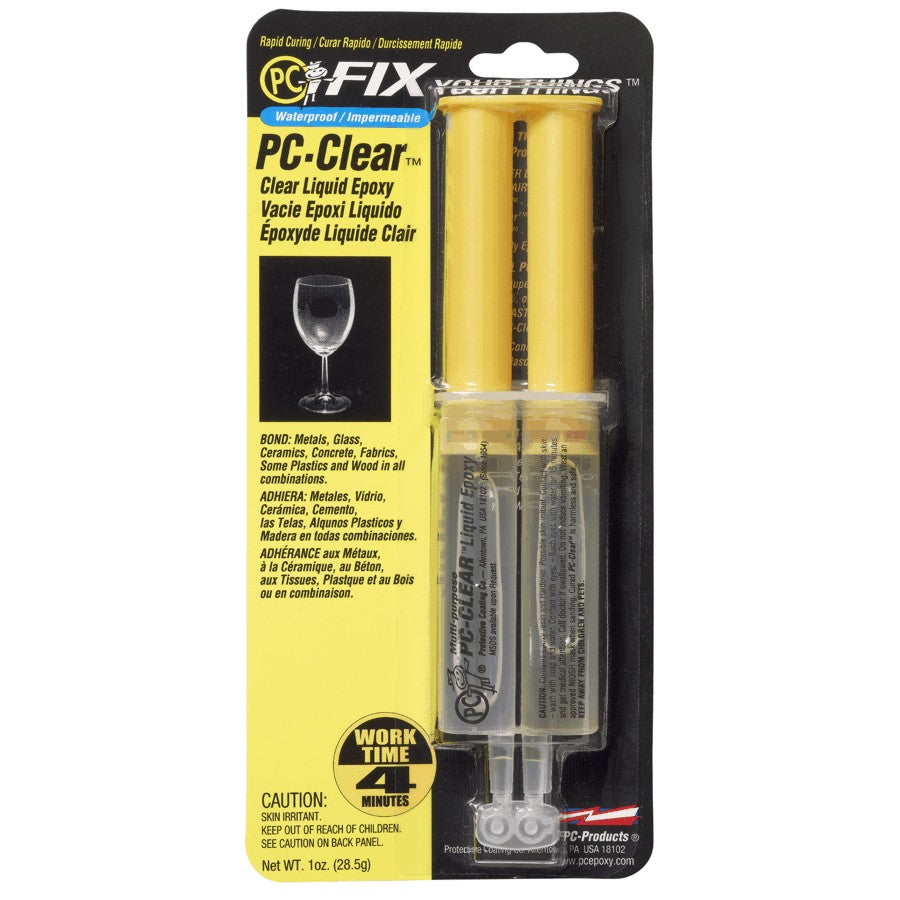 Epoxy 2 Part Adhesive • A liquid epoxy that is clear • A liquid epoxy with strength rivalling that of heavy duty paste epoxies • Bonds: metal, glass, ceramics, concrete, fabrics and wood in all combinations • Waterproof once cured • Working time of 4 minutes • Fully cured in 1 hour • Multi-purpose
