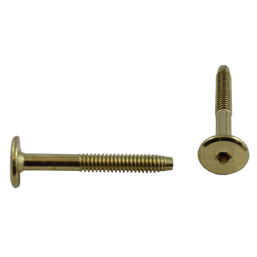 Assembled Product Length: 2" Assembled Product Height: 0.25" Assembled Product Width: 0.25" . Connector bolts are designed to connect furniture or woodworking components at right angles or parallel • Ideal for all knock-down or ready-to-assemble furniture • Used with cap nuts, inserts, cross dowels or tee nuts • Low profile, large diameter, hex drive head
