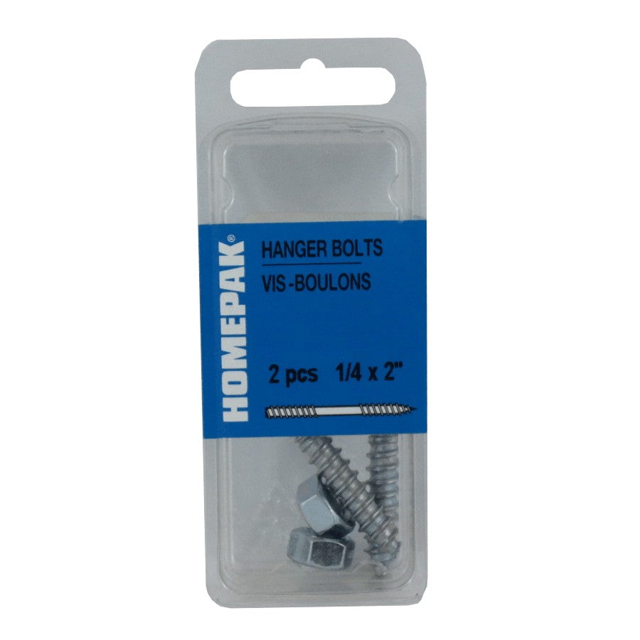 2 Pack 1/4" x 2" Zinc Plated Hanger Bolts, with Nuts