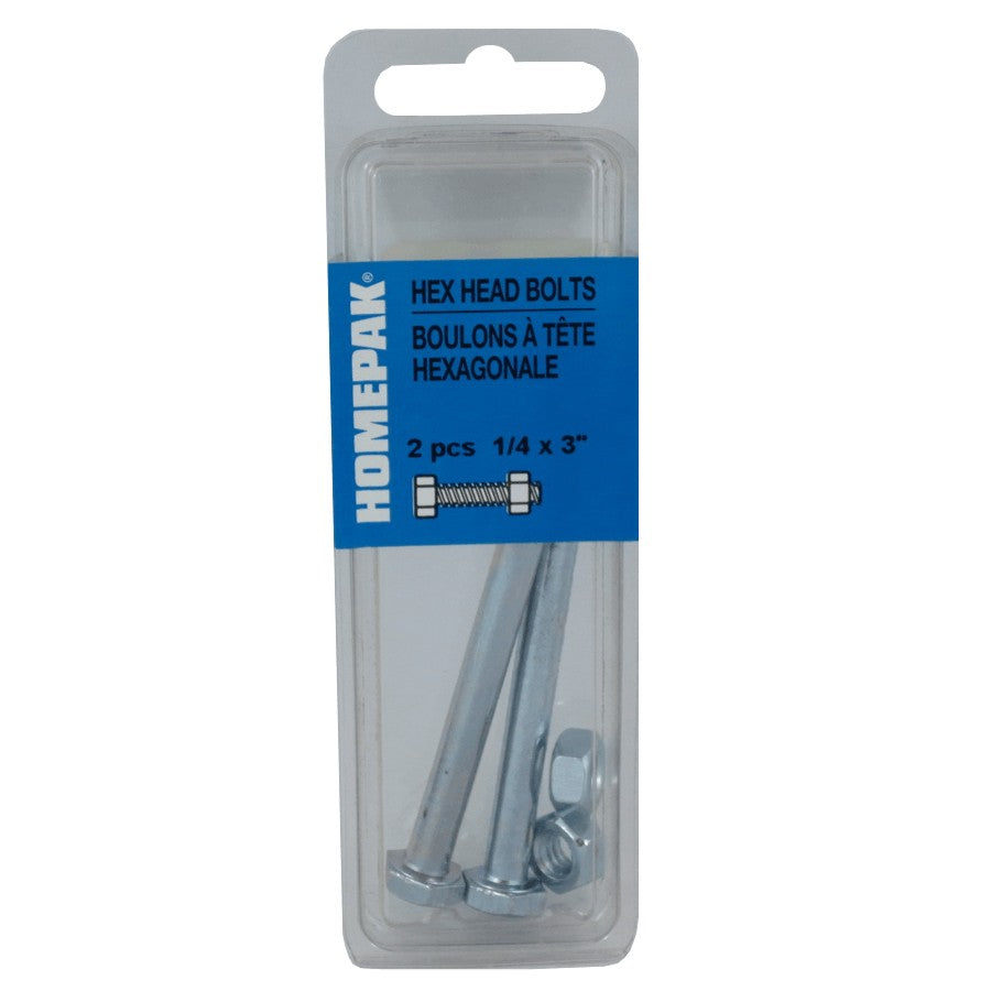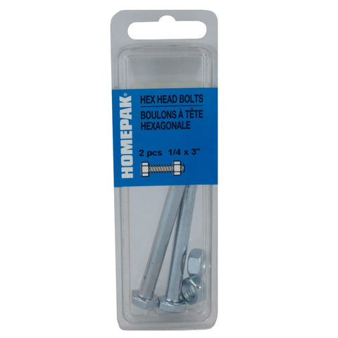 2 Pack 1/4" x 3" #2 Zinc Plated Hex Bolts, with Nut