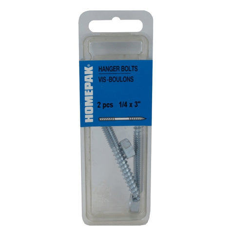 2 Pack 1/4" x 3" Zinc Plated Hanger Bolts, with Nuts