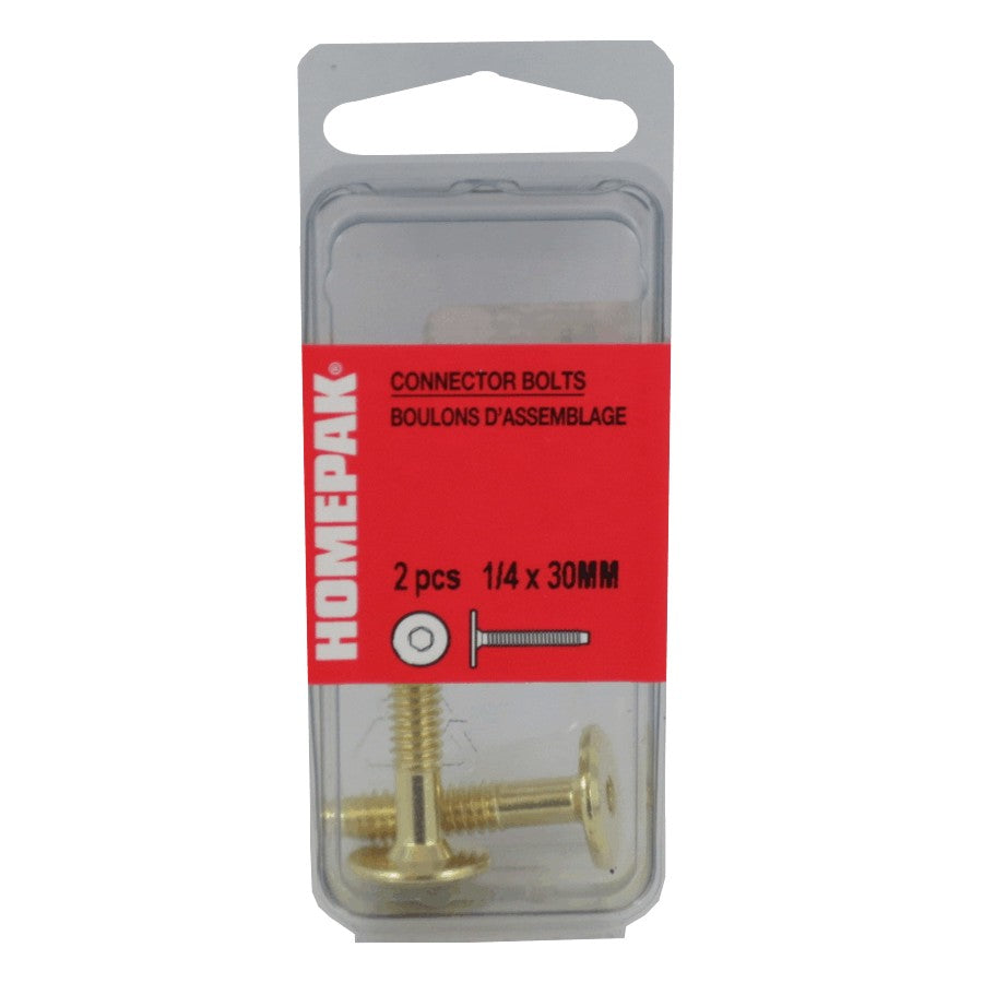 2 Pack 1/4" x 30mm Brass Plated Connector Bolts