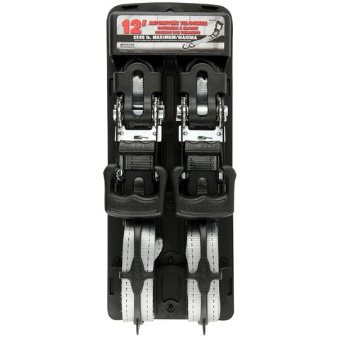 This 2 pack of 1.25" x 12' heavy duty straps feature long handle ratchets with molded rubber handles, vinyl coated "S" hooks, and strong silver polyester webbing. The long handle ratchets are easy on the hands.