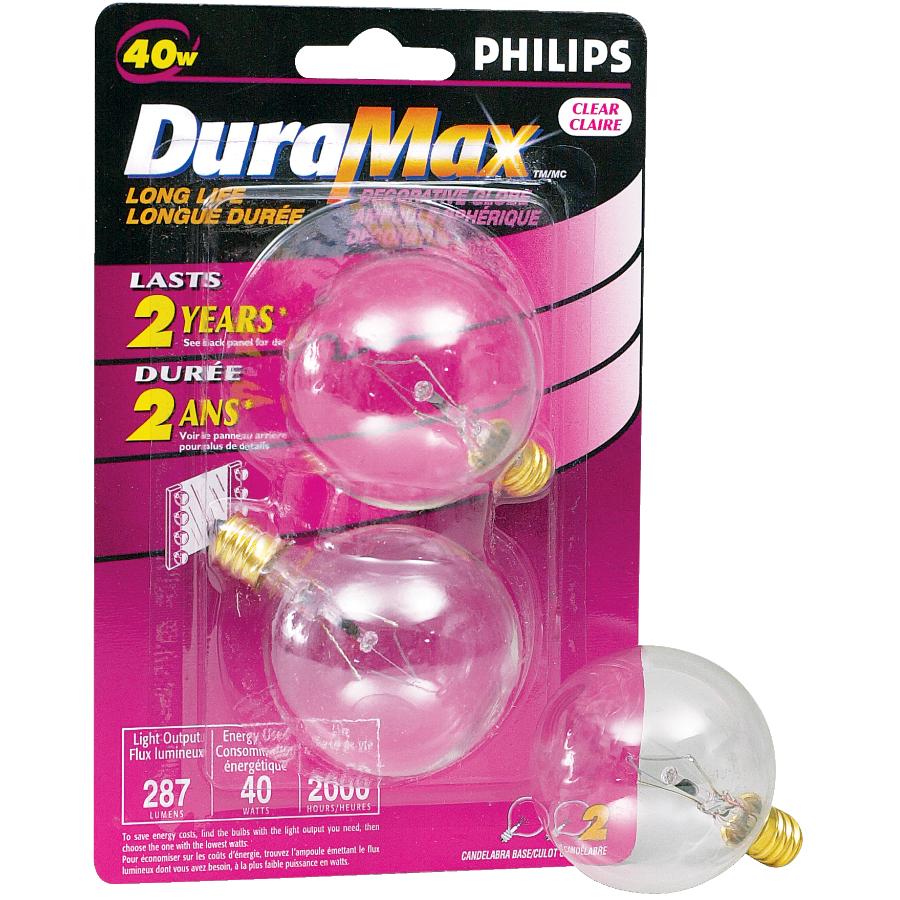 DuraMax 40W G16.5 Candelabra Base Clear Globe Light Bulbs - 2 Pack