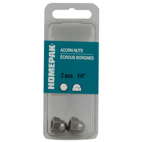 2 Pack #1/4-20 18.8 Stainless Steel Acorn Nuts