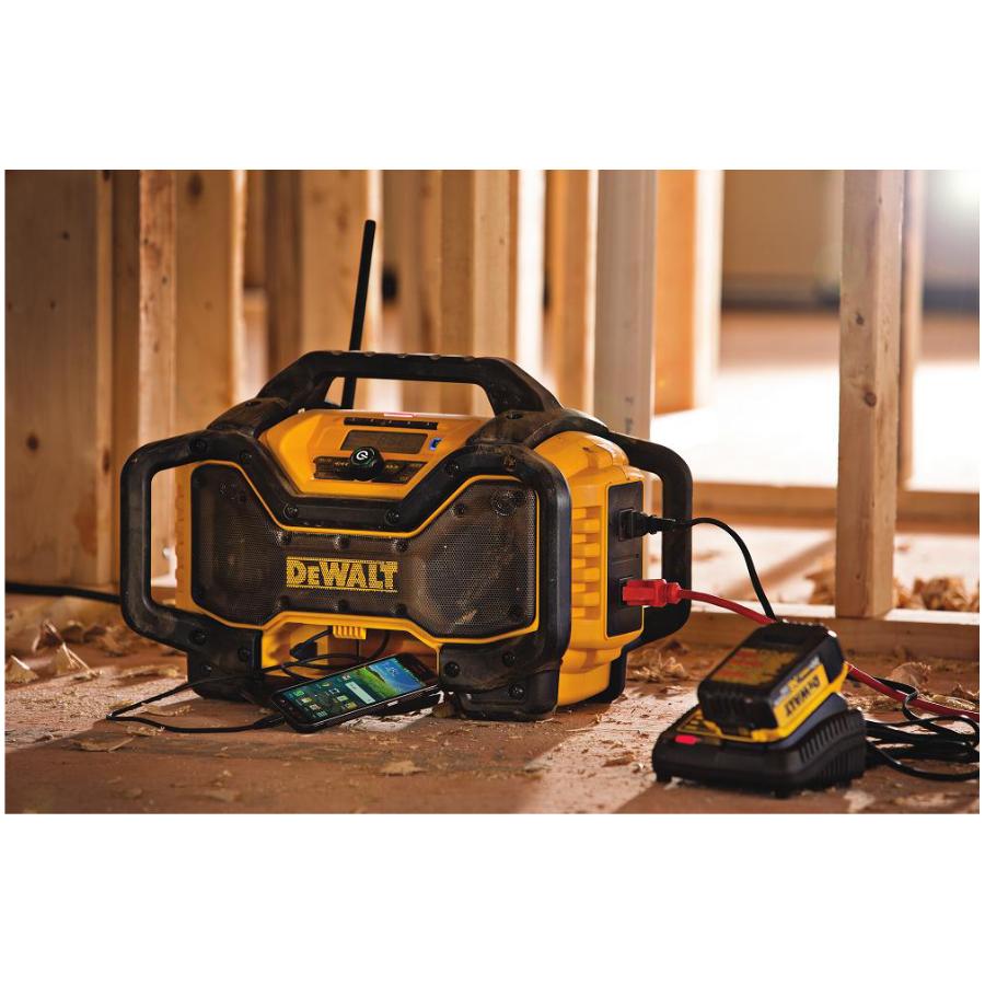 The most versatile Jobsite Radio Charger on the market. The unit is able to run off and charge DEWALT slide pack battery packs including 20V MAX* and FLEXVOLT 20V/60V MAX* at 3 AMPs when plugged into an AC outlet. The unit is designed to include woofers, tweeters and air ports to provide clear and rich sound at all volume levels.