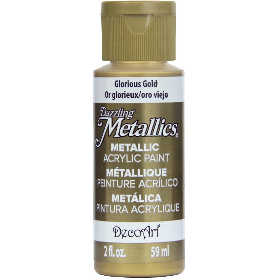Colour Family: YELLOW . Acrylic paint that is made from finely ground metal Can be used on virtually and craft surface, like frames, lamps, vases, figurines, candles and candle holders and fabrics Perfect for painting, sponging, faux finishing and adding metallic accents to home decor projects Deep, rich shade Non-toxic Water based Soap and water cleanup Glory gold