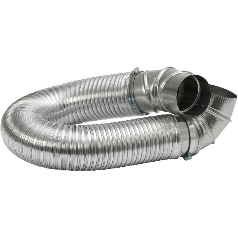 This all-inclusive, All Metal Dryer Hook Up Kit is truly the ultimate installation kit for both the contractor and consumer. This kit includes a 4" x 8' UL 2158A listed and marked semi-rigid aluminum duct, two attached all metal heavy duty elbows and two 4" metal galvanized worm gear clamps. The semi-rigid duct is UL 2158A labeled and approved for safe dryer venting. It is thicker than the standard Dundas Jafine non-UL duct and like all aluminum ducts is totally non-combustible. New manufacturing technologies incorporated into this duct also allow for easy rotation, adding durability during installation. The two metal elbows are flame resistant for a safe and long lasting connection and are designed to achieve tight 0 to 90° turns.