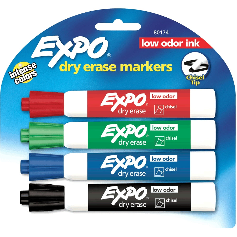 Expo 2 Low-Odour Dry Erase Markers, Chisel Tip, 4-Pack, Assorted Colours (80174)