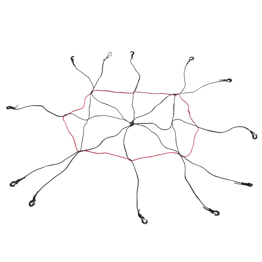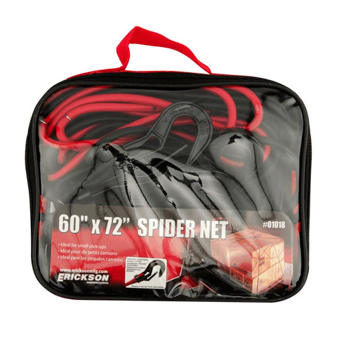 Our 60" x 72" spider bungee cargo net come in a zippered reusable bag. Made of 1/4" red and black bungee with 12 polycarbonate adjustable hooks for securement. Hooks can be adjusted to make the net the perfect size! Designed to stop the tarp from blowing in the wind.