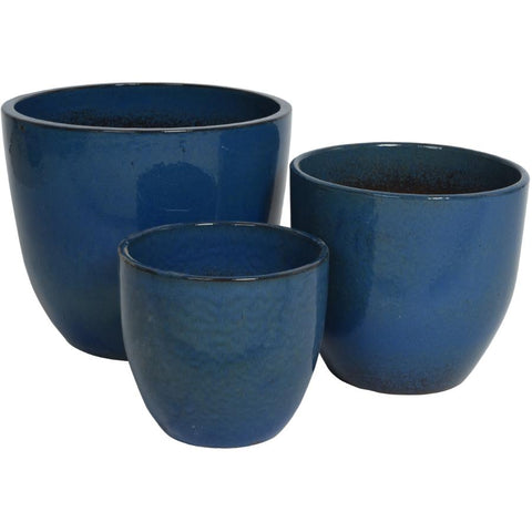 Dark Blue Matteo Ceramic Planters - 3 Piece, Assortment