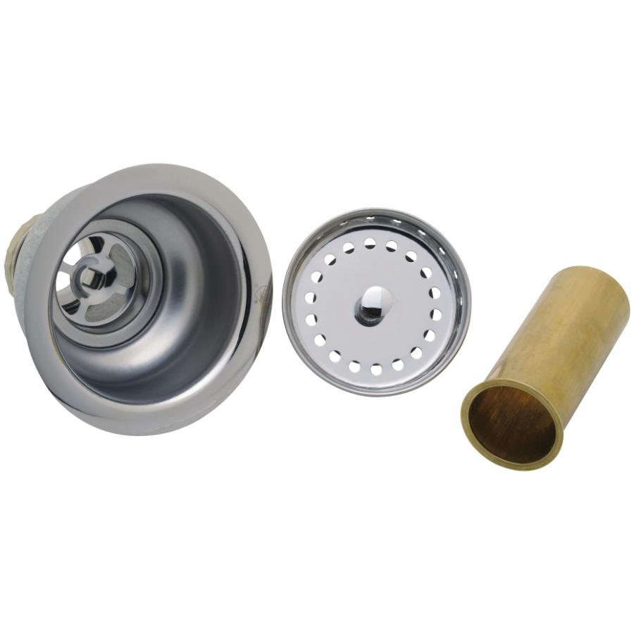 This deluxe strainer basket assembly features a tapered cone shape. It's made of solid brass for durability and performance featuring a spot resist finish resisting fingerprints and watermarks for a cleaner looking kitchen.