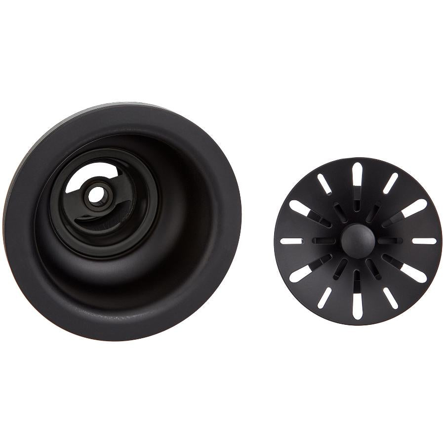 This deluxe strainer basket assembly features a tapered cone shape featuring a matte black finish. It's made of solid brass for durability.