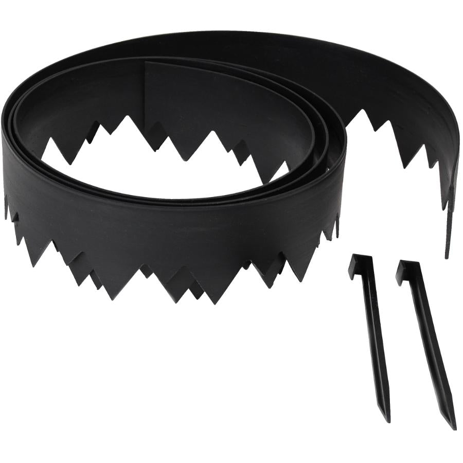 Assembled Product Length: 240" . Smooth top design New tapered teeth design allows for easy installation Designed to pound into the ground with a rubber mallet Allows DIY'ers to vary height of edging up to 2.5" tall Black INCLUDES: 2 x anchor stakes 2 x connectors DIMENSIONS: 20'