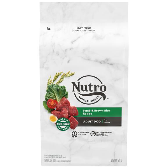 NUTRO NATURAL CHOICE Adult Dog Food, contains no Chicken by-product meal, corn, wheat or soy. Made with Non- GMO Ingredients. Formulated with potimal levels of omega 6 fatty acid, zinc and B vitams to promote healthy skin and soft shinny coat.