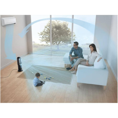 Some tower fans are quiet but weak. Others are powerful but noisy. The Dyson tower fan is quiet, safe and powerful. It uses Air Multiplier technology to create a powerful stream of hot and cool uninterrupted airflow. The unit comes with a remote control that controls temperature, adjusts airflow power, sets oscillation, programs sleep timer and switches between focused and diffused airflow mode. Ceramic fan with a black iron finish.