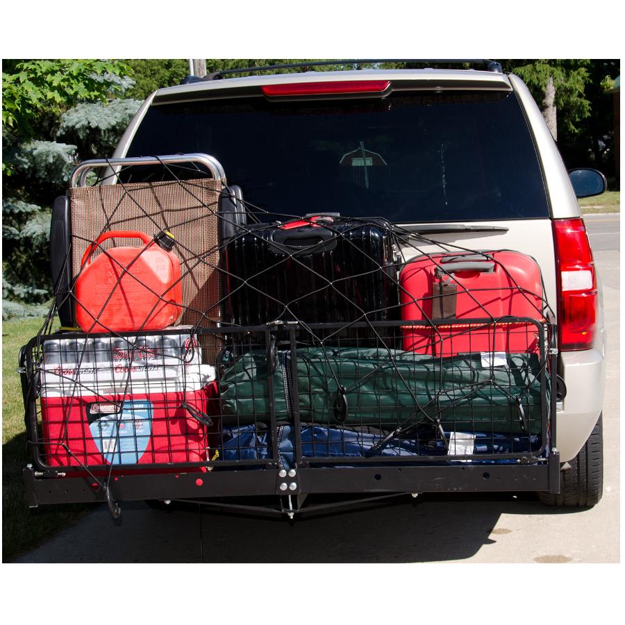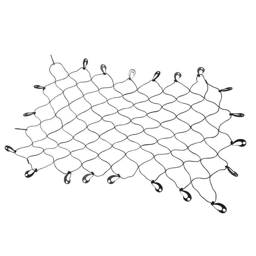 This 52" x 70" bungee cargo net comes in a zippered reusable bag. Made of 1/4" bungee with 22 polycarbonate hooks for securement. Designed to stop the tarp from blowing in the wind or for light items and odd shaped loads.