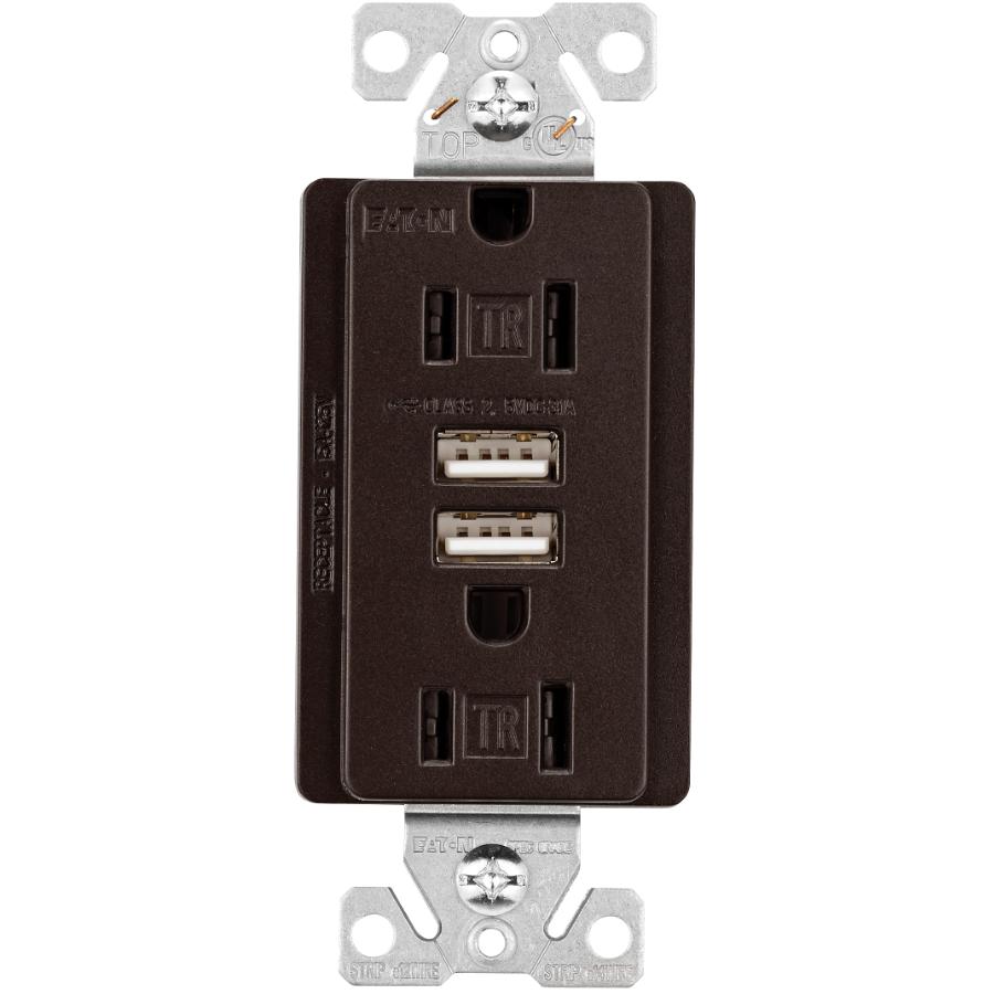 From decorator to tamper resistant receptacles, Eaton’s broad line of residential USB receptacles cover virtually any need throughout a house. All of our USB receptacles are designed for long-term reliability and ease of installation, while meeting and exceeding the latest industry performance standards.